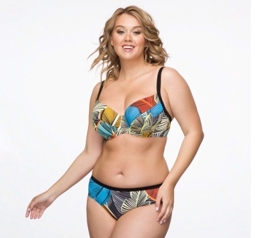 - Выбирайте купальник с крепкими и широкими бретелями — это лучше распределяет нагрузку и обеспечивает поддержку. В верхней части подойдут бюстье, топы с формованной чашкой или бандо, а для дополнительной фиксации — модели с надёжной застёжкой или регулируемыми элементами. В нижней части обратите внимание на плавки с завышенной талией или те, что прикрывают живот – они визуально корректируют силуэт и гарантируют удобство ношения.